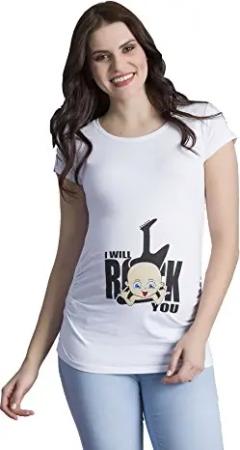 I Will Rock You - Lustige witzige süße Umstandsmode mit Motiv Umstandsshirt für die Schwangerschaft T-Shirt Schwangerschaftsshirt, Kurzarm (Weiß, X-Large)