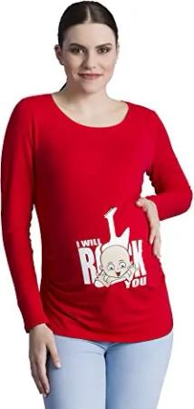 I Will Rock You - Umstandsmode Umstandsshirt mit Motiv Sweatshirt Schwangerschaftsshirt für die Schwangerschaft, Langarm (Rot, X-Large)