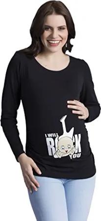 I Will Rock You - Umstandsmode Umstandsshirt mit Motiv Sweatshirt Schwangerschaftsshirt für die Schwangerschaft, Langarm (Schwarz, X-Large)