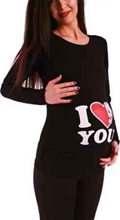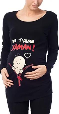Je T'Aime Maman - Umstandsmode Umstandsshirt mit Motiv Sweatshirt Schwangerschaftsshirt für die Schwangerschaft, Langarm (Schwarz, Large)