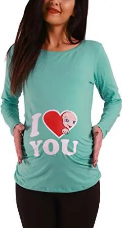 Love - Lustige witzige süße Umstandsmode Umstandsshirt Schwangerschaftsshirt Sweatshirt mit Motiv für die Schwangerschaft, Langarm (Mint, Small)