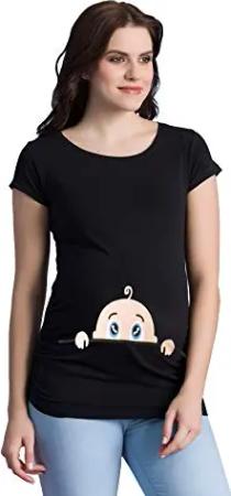 Neugieriges Baby - Lustige witzige süße Umstandsmode mit Motiv Umstandsshirt für die Schwangerschaft T-Shirt Schwangerschaftsshirt, Kurzarm (Schwarz, Medium)