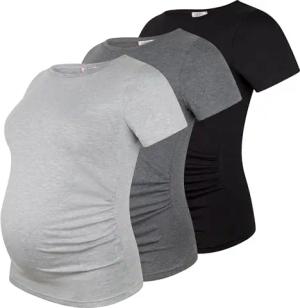 Umstandsshirt 3er Set unifarben Umstandsmode Schwangerschaft Schwangerschaftsshirt, Kurzarm (Schwarz, Dunkelgrau, Hellgrau, XL)