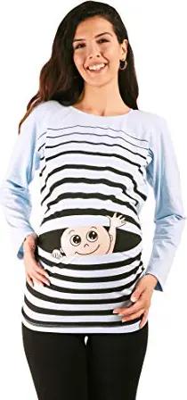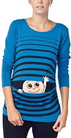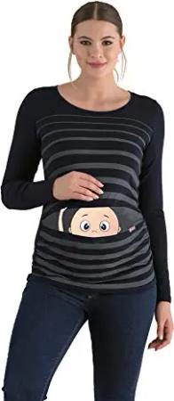 Neugieriges Baby - Umstandsmode Umstandsshirt mit Motiv Sweatshirt Schwangerschaftsshirt für die Schwangerschaft, Langarm (Dunkelblau, Medium)