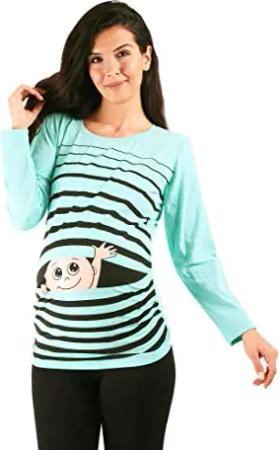 Neugieriges Baby - Umstandsmode Umstandsshirt mit Motiv Sweatshirt Schwangerschaftsshirt für die Schwangerschaft, Langarm (Mint, Medium)