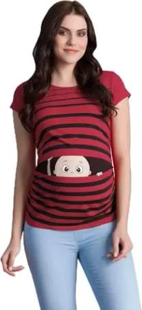Witzige süße Umstandsmode T-Shirt mit Motiv Schwangerschaft Geschenk - Kurzarm (Weinrot, X-Large)