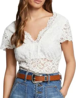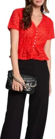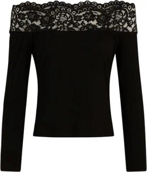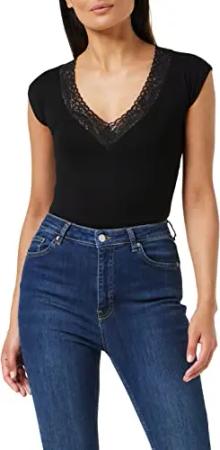 T-Shirt, kurzärmelig, mit Spitze, Schwarz, Größe XS