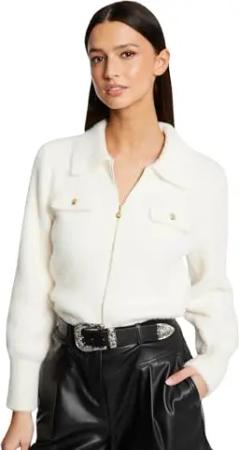 Pullover, langärmlig, gerippt, mit Reißverschluss, Elfenbeinweiß, Größe M