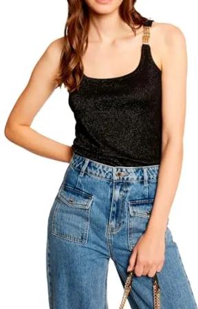 Tanktop mit schmalen Trägern, Schwarz, Größe S