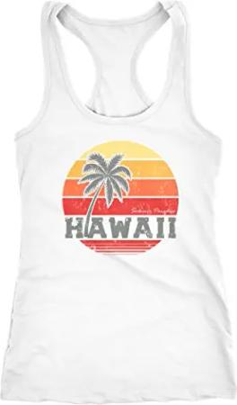 Damen Tank-Top Hawaii Palme Tropical Summer Retro Slim Fit Baumwolle Racerback Weiss XL