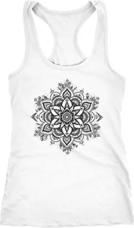 Damen Tank-Top Mandala Ornament Bohemian Boho Ethno Racerback Weiss M