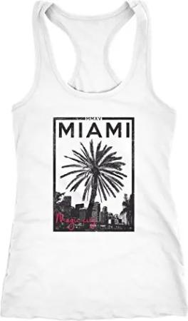 Damen Tank-Top Miami Beach Sunset Palmen Racerback Trägershirt Weiss M