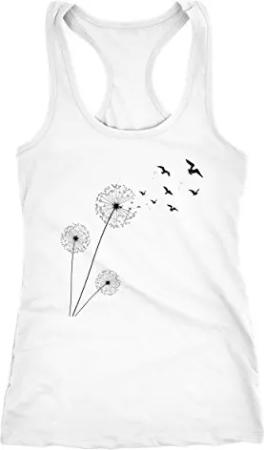 Damen Tank-Top Pusteblume Vögel Dandelion Birds Racerback Weiss XL