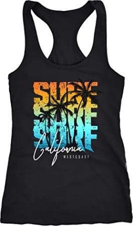Damen Tank-Top Sommer Surf California Palmen Racerback Schwarz-Tuerkis XXL
