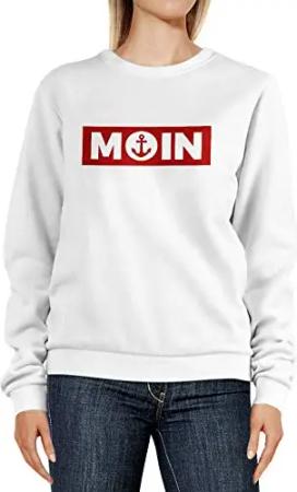 Sweatshirt Damen Moin norddeutsch Morgen Anker Badge Rundhals-Pullover Pulli Sweater weiß S