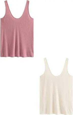 Damen Gerippte, lässige Trägertops mit U-Ausschnitt im 2er-Pack Rosa/Creme 48