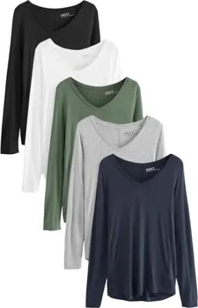Damen Langärmelige Tops 5er Pack Schwarz/Weiß/Grau/Blau/Grün 46