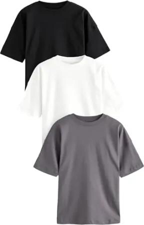 Damen Oversize-T-Shirts aus 100% Baumwolle, 3er-Pack Monochrom L