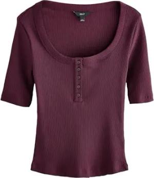 Damen Standard Geripptes Henley-Kurzarmoberteil mit Knöpfen Berry Red 42