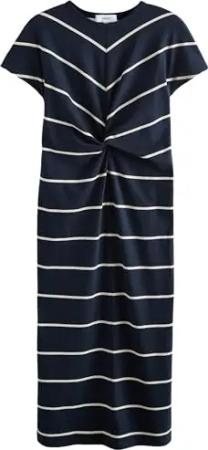 Damen Standard Kurzärmliges T-Shirtkleid Sommerkleid mit Drehung Marineblau/Weiß gestreift 36