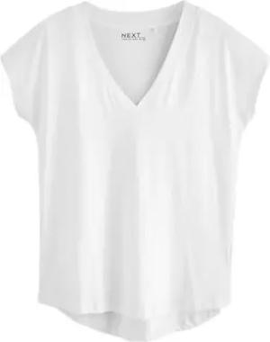 Damen Standard T-Shirt mit V-Ausschnitt Flügelärmel Weiß M