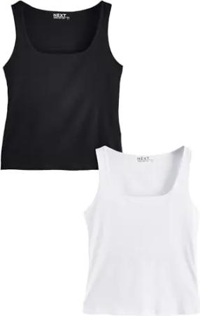 Damen Tops mit eckigem Ausschnitt 2er-Pack Schwarz/Weiß XS
