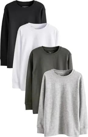 Jungen Einfarbig 4 x Langarmshirts Schwarz/Weiß/Grau 110