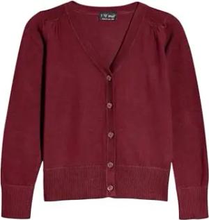Mädchen Standard Strickjacke mit V-Ausschnitt Burgunderrot 128