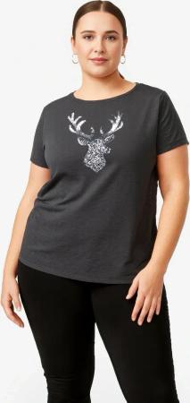 Damen T-Shirt Kurzarm Rundhals Curvy Plus Size Shirt, Farben:Schwarz, Größe:42-44