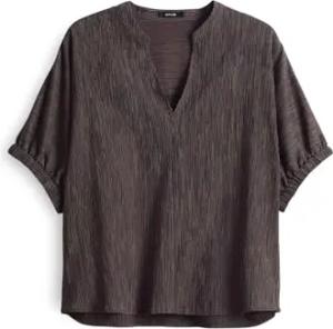 Damen Kurzarmbluse | Streifenbluse FARULA Loose mit bewegter Crash Struktur Midnight Brown, 40