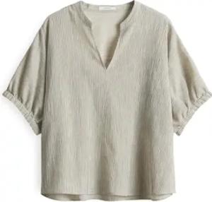 Damen Kurzarmbluse | Streifenbluse FARULA Loose mit bewegter Crash Struktur Natural Glaze, 44