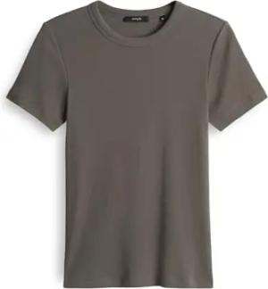 Damen Kurzarmshirt | SAVELLA Slim Jerseyshirt mit feiner Rippstruktur Midnight Brown, 36