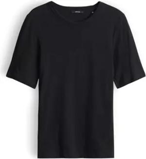 Damen Kurzarmshirt | Feines Rippshirt SAMUNA Slim aus BCI Cotton Mix Black, 42