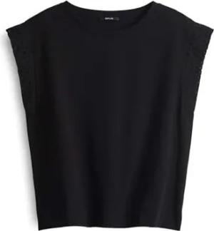Damen Kurzarmshirt | T-Shirt SALLSO Regular mit dekorativer Lochspitze Black, 36