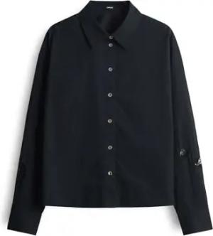 Damen Langarmbluse | Feminine Hemdbluse FOTANIS Regular mit filigranen Cut-Out Detail am Ärmel Black, 34