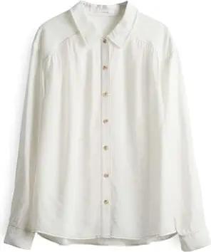 Damen Langarmbluse | Hemdbluse FLARA Loose aus schimmernder Viskose Milk, 42