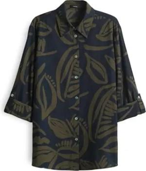 Damen Langarmbluse | FUMANI Jungle Loose Printbluse aus Cotton Voile Olive Leaf, 36