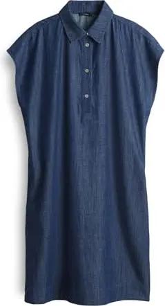 Damen Dreiviertelarmbluse | Jeansbluse FERELLA Regular aus nachhaltigem BCI Cotton Mix mid deep Blue, 36