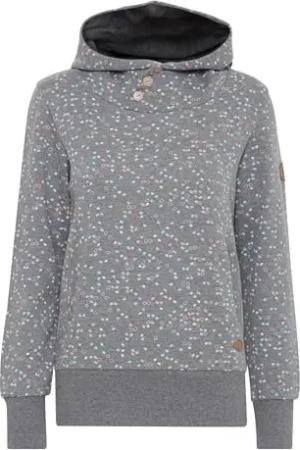 by OXBeate Damen Sweater Sweatshirt Pullover mit Kapuze Kängurutasche Rippbündchen Regular fit, Größe:XL, Farbe:Medium Grey Melange (201146)