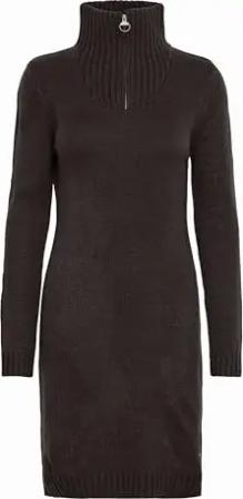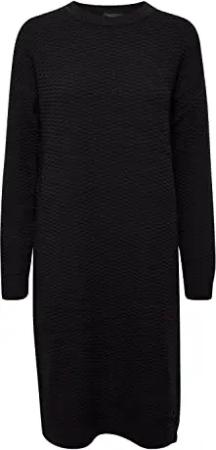 OXCarryola Damen Kleid Strickkleid Midikleid mit Troyerkragen Rippbündchen Label-Badge Regular fit, Größe:M, Farbe:Black (799000)