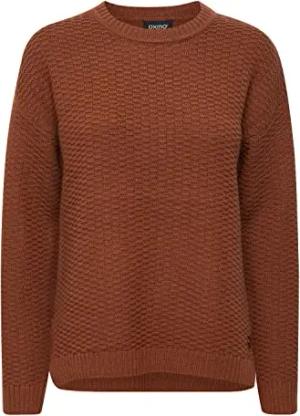 OXSarah Damen Strickpullover Feinstrick Pullover mit Rundhals-Ausschnitt Rippbündchen 100% Baumwolle Regular fit, Größe:2XL, Farbe:Cinnamon (795056)