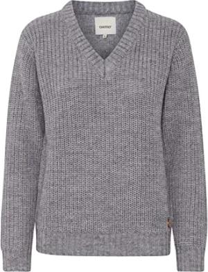 OXCarryone Damen Strickpullover Pullover mit Rundhals Label-Badge Regular fit, Größe:XS, Farbe:MID Grey (792842)