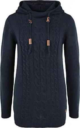 OXCable Damen Strickpullover Grobstrick Pullover mit Kapuze Kordelzug Rippbündchen Regular fit, Größe:M, Farbe:Insignia B (791991)