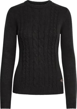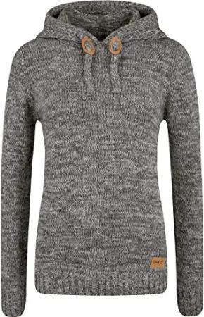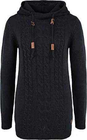 OXCable Damen Strickpullover Grobstrick Pullover mit Kapuze Kordelzug Rippbündchen Regular fit, Größe:S, Farbe:Black (799000)