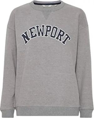 OXCOLEEN Damen Sweatshirt Pullover Sweater O-Neck Crewneck College-Look Frontprint überschnittene Ärmel 100% Baumwolle, Größe:XL, Farbe:Medium Grey Melange (201146)
