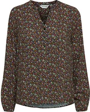 OXElvy Damen Bluse Langarm mit V-Ausschnitt, Größe:38, Farbe:Burnt Orange Mix (201486)