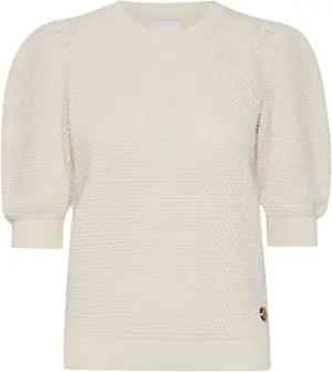OXMicha Pullover Damen T-Shirt Kurzarm Shirt O-Neck halblange Ärmel Kurzarm Rippbündchen Struktur-Strick mit Holz-Detail, Größe:L, Farbe:Birch (130905)