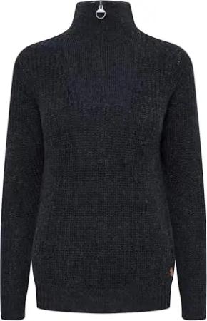 OXCarry Damen Strickpullover Troyer Grobstrick Pullover mit Troyerkragen Rippbündchen Label-Details Regular fit, Größe:XS, Farbe:Dark Grey (792890)