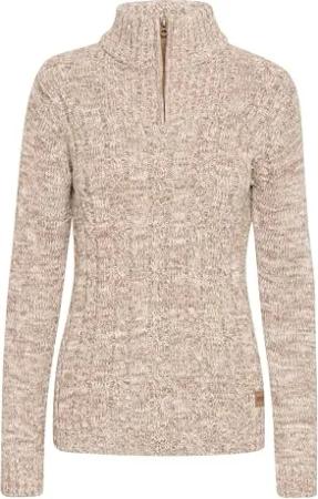 OXBeatanette Damen Pullover Sweater Pulli mit hohem Kragen Eingrifftaschen Rippbündchen Regular fit, Größe:L, Farbe:Oyster (141107)