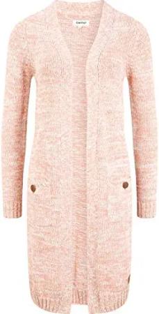OXPhiletta Damen Lange Strickjacke Grobstrick Cardigan Longstrickjacke aufgesetzte Taschen 100% Baumwolle Regular fit, Größe:XS, Farbe:Cameo BROW (7951783)